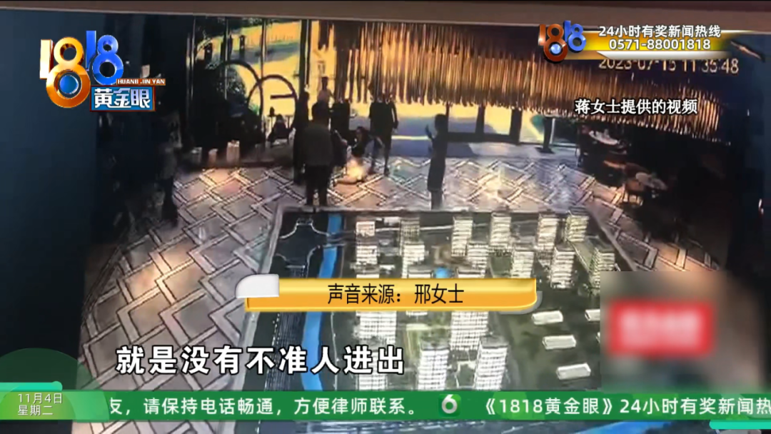 蒋女士:买房的时候房产公司承诺是,我们可以去免费用这个健身房以及泳池的。但是我们2023年的时候想去用这个泳池的时候,他们说开了小孩子的培训班,这个时间不可以用,你们只能下午4点以后来用。物业主任没有了解过任何的内容的情况下,就抢了我的手机,我被她一直追着跑,还把我推倒了。