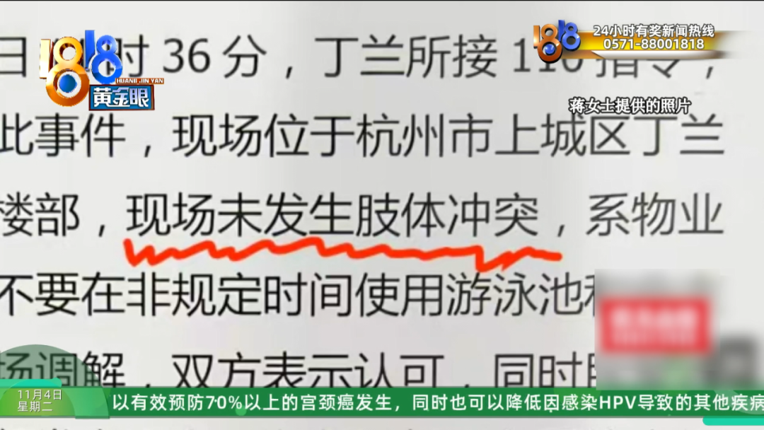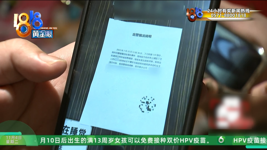 蒋女士:泳池事件是第一次,然后每次发生了事情,我们每次去找物业,他们都不处理不解决。