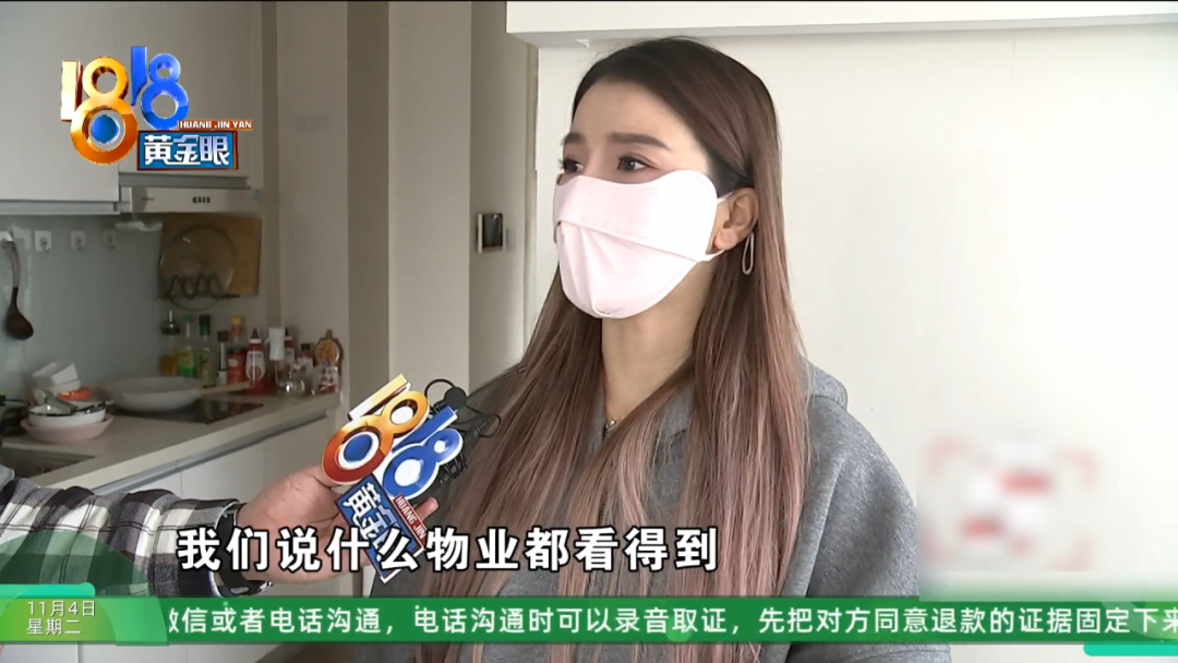 蒋女士:之前我进去之后,就是说了这个物业,比如晚上路灯不开、电梯空调不开的情况,就被踢出来了。